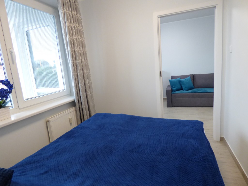 ul. Cicha, III piętro z windą, z balkonem, po południu słoneczny apartament. Do spania narożnik 2-osobowy w dużym pokoju oraz łoże małżeńskie w sypialni. Mieszkanie z internetem WiFi.