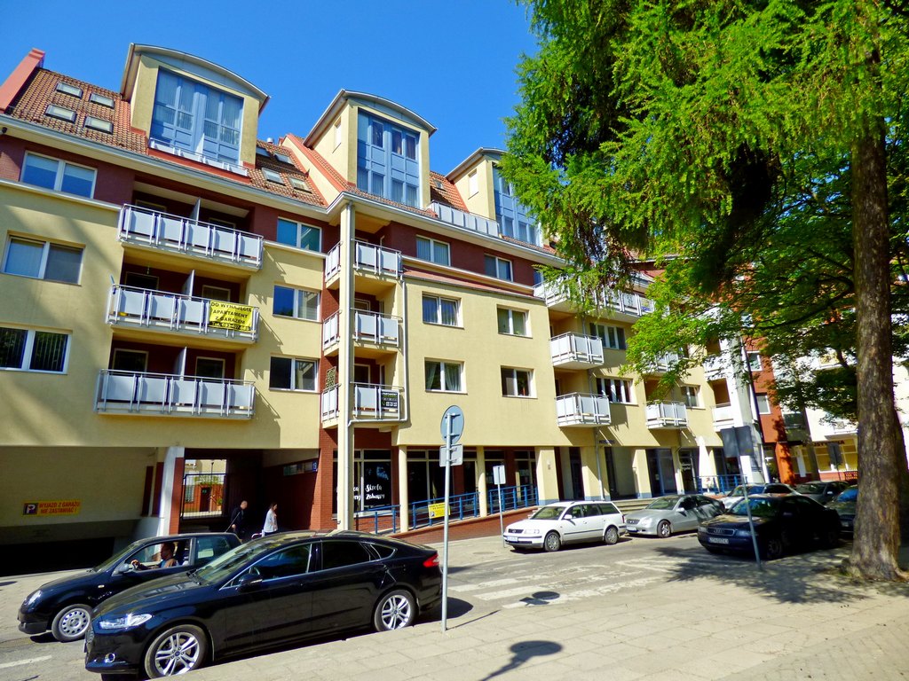 ul. Obrońców Westerplatte, II piętro z windą, z balkonem, widok na Park Zdrojowy. Do spania łoże małżeńskie w sypialni oraz narożnik 2-osobowy w dużym pokoju. Mniejszy pokój zamykany. Mieszkanie o powierzchni 37m2.