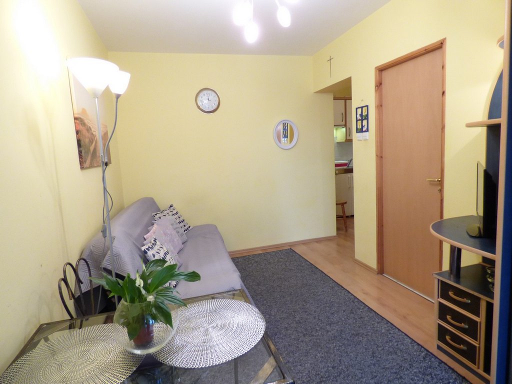 balkon. Do spania kanapa 2-osobowa. Mieszkanie o powierzchni 19m2.