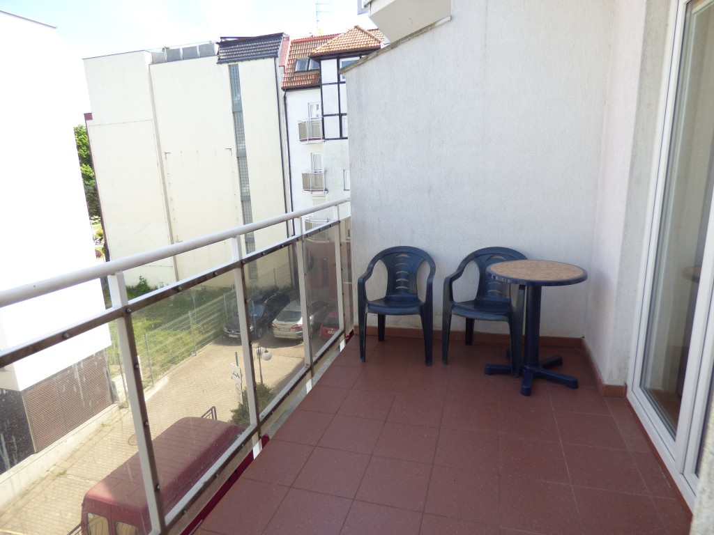 Balkon: stolik, 2 krzesła, strona północno-zachodnia;
