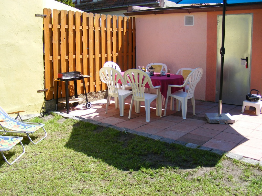 Zapraszamy na pobyty w samodzielnym pokoju gościnnym dla max 3 osób (2+1), z łazienką, kuchnią i ogrodem w zachodniej części Kołobrzegu w odległości ca 400m od morza. Nasz pokój zapewnia wypoczynek w spokojnej, willowej dzielnicy (ul. Wylotowa 11), w małej odległości od plaży. Znajduje się w przedwojennym wyremontowanym domu, na parterze, z wejściem bezpośrednio z podwórza. Sen zapewnia nowy rozkładany narożnik 2-osobowy o powierzchni spania 140x200 i 1-osobowy rozkładany fotel. Do wyłącznej dyspozycji gości łazienka z prysznicem, aneks kuchenny w pełni wyposażony (lodówka, naczynia, sztućce, garnki, kuchenka elektryczna, czajnik bezprzewodowy, przelewowy ekspres do kawy), telewizor 42" na ścianie (dostępne programy DVB-T + kilka kanałów niemieckich), internet Wi-Fi, sprzęt plażowy (2 leżaki, koc, parawan), ogród z grillem, stołem, krzesłami, parasolem ogrodowym, zabawkami ogrodowymi. Ogródek jest zamykany i dostępny wyłącznie dla gości z pokoju. Przy ogródku jest zamykany schowek, w którym można zostawić np. rowery. Ogródek oddalony ok. 10m od pokoju. Auto można zaparkować na bezpłatnych miejscach parkingowych wzdłuż ulicy Wylotowej. Do centrum miasta dogodny dojazd autobusem miejskim nr 5 (przystanki tuż pod domem).W pobliżu sklepy spożywcze (dwie Żabki, Społem, Netto, Biedronka) oraz mnóstwo punktów gastronomicznych (pizzerie, jadłodajnie, lodziarnia itd).