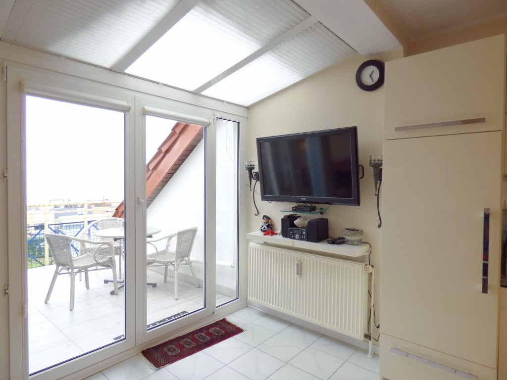 Pokój 1: narożnik rozkładany 2-osobowy, stolik kawowy, stół, 4 krzesła, szafka wisząca, TV LCD 42” SONY powieszony na ścianie;