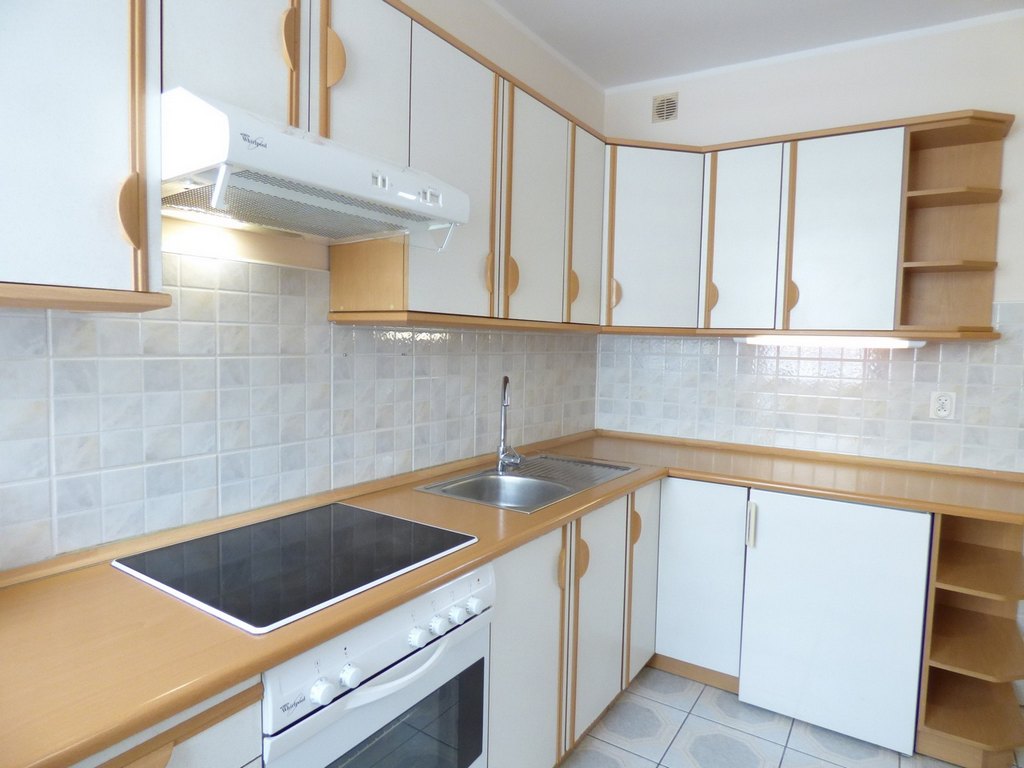 Kuchnia: płyta ceramiczna 4-palnikowa, piekarnik, okap kuchenny, zlewozmywak 1-komorowy, lodówka podblatowa, czajnik, ekspres do kawy przelewowy, garnki, naczynia, sztućce, stół, 4 krzesła, szafa gospodarcza, deska do prasowania, żelazko, odkurzacz;