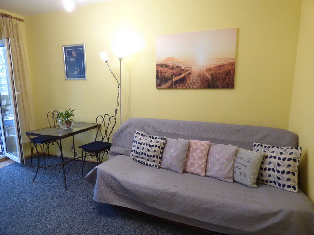 balkon. Do spania kanapa 2-osobowa. Mieszkanie o powierzchni 19m2.