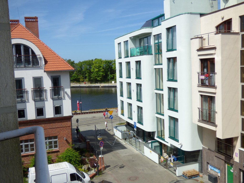 ul. Cicha, II piętro bez windy, z balkonem, do spania trzy kanapy. Z okien widać fragment portu i miejsce cumowania statku Viking. Mieszkanie o powierzchni 50m2. W oknach rolety wewnętrzne i firany.